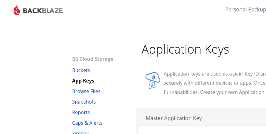 Go to Blackblaze B2 website and click on App keys and generate a new set of keys for rclone.